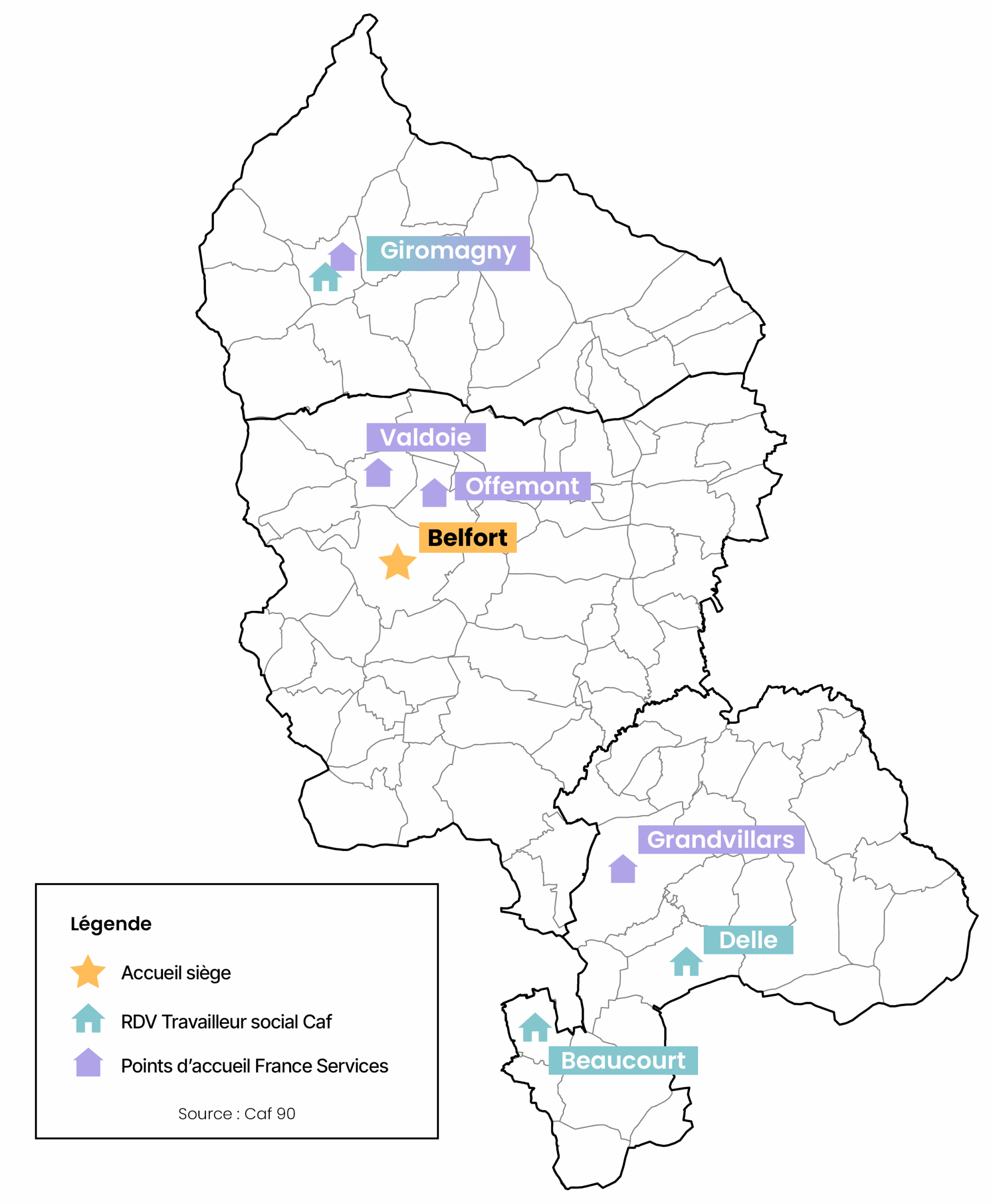 • Offemont : France services La clé d’Offemont, 3b rue Jean Macé, 90300 OFFEMONT.